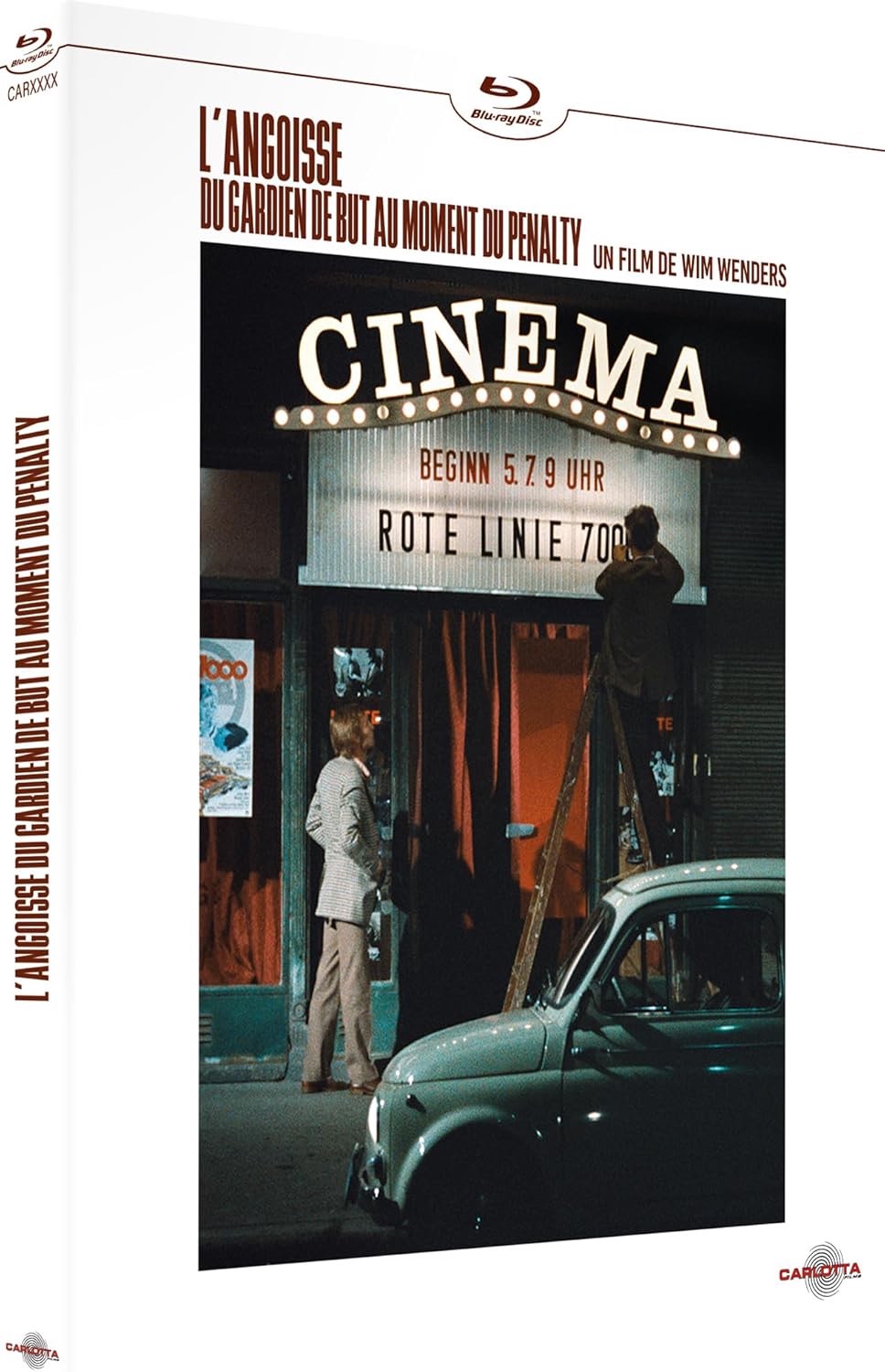 Joseph Bloch est gardien de but de classe internationale. Lors d’une rencontre à Vienne, il « décroche », encaisse un but et se fait expulser par l’arbitre. Il entame alors une errance dans la métropole autrichienne, prend une chambre d’hôtel et va au cinéma. Le lendemain, il passe la nuit avec la caissière du cinéma et finit par l’étrangler au petit matin, sans raison. Bloch prend ses affaires et part en autocar pour la petite ville de Bierbaum où il essaie de renouer avec Hertha, son ex-petite amie. Mais là-bas, il y a beaucoup de policiers sur les routes en raison de la disparition d’un enfant. En lisant les articles de presse, il s’informe de l’avancement de l’enquête et apprend qu’il a laissé une piste avec des pièces de monnaie américaines tombées d’une poche endommagée de son veston. En assistant à un match de football, il explique à son voisin, à l’occasion d’un penalty, à quel point le gardien de but et le tireur doivent se concentrer mentalement l’un sur l’autre. Le film se termine par l’arrêt du penalty. On ne saura pas si Bloch sera arrêté. Avec Die Angst des Tormanns beim Elfmeter (en v.o.) Wim Wenders tourne, en 1971, son second long-métrage après Summer in the City (1970). Entouré de ses futurs fidèles collaborateurs (Robby Müller à la caméra, Peter Przygodda au montage), le cinéaste allemand entame sa collaboration avec l’écrivain autrichien Peter Handke en adaptant son roman éponyme publié en 1970. Déjà apparaissent les thèmes que Wenders développera dans ses films suivants, en l’occurrence la place de l’homme face à l’existence, face aux femmes, l’errance, la frontière… La fuite en avant de Bloch (Arthur Brauss), archétype de l’antihéros, rappelant l’errance existentielle du protagoniste de L’étranger d’Albert Camus mais aussi les œuvres de Michael Haneke, se drape d’une mise en scène sobre et stylisée, révélant un style inimitable. L’angoisse... est présenté dans une édition restaurée 4K (supervisée par la fondation Wim Wenders) et, pour la première fois, en Blu-ray. Dans les suppléments, on trouve un entretien (14 mn) filmé en 2017 dans lequel le réalisateur revient sur sa première véritable expérience de tournage et sur le combat mené durant des années pour obtenir les droits d’auteur sur la musique de son film. (Carlotta)