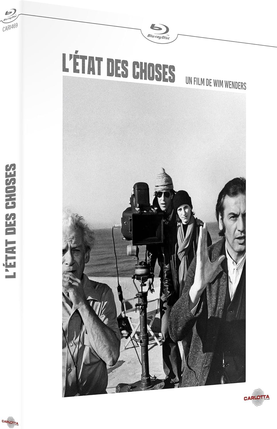 Sur la côte désertique du Portugal, le tournage des Survivants, un film de science-fiction, s’interrompt faute de pellicule. La production est à court d’argent. L’équipe est immobilisée dans un vieil hôtel dévasté par les tempêtes. Le réalisateur, Friedrich Munro, est un leader philosophe, qui entretient une relation paternelle avec les membres de son équipe. Il veille à leur bien-être physique, mais aussi émotionnel. Soutenu par Joe, son cadreur, il reste solide comme un roc au milieu de la crise, maintenant son équipe concentrée sur son objectif créatif pendant cette période de vacuité, dans l’attente d’un apport de fonds qui permettra de reprendre le travail. Les jours passent sans nouvelles du producteur qui se trouve aux États-Unis et les membres de l’équipe s’occupent à tenir à l’écart la menace de l’ennui prêt à les submerger. Ils se rapprochent les uns des autres, forcés à des relations plus personnelles qu’il n’est d’usage lors des tournages. C’est le bon côté de l’épreuve qu’ils traversent. Mais à mesure que les jours deviennent des semaines, l’appréhension commence à dominer. Joe doit retourner chez lui pour rejoindre sa femme qui est mourante, et laisse avec réticence Friedrich gérer seul une situation qui va s’aggravant… Dix ans après L’angoisse… et alors qu’il a déjà donné Faux mouvement (1975) et L’ami américain (1977), Wim Wenders s’attelle à l’exemple même du film dans le film et propose une brillante réflexion sur le cinéma. Der Stand der Dinge (en v.o.) s’inspire largement de la première expérience hollywoodienne vécue par Wim Wenders sur son film Hammett (1982) dont le tournage avait dû être interrompu à plusieurs reprises. Cette mise en abyme du cinéma, où l’on croise les réalisateurs Samuel Fuller (Joe, le cadreur) et Roger Corman, interroge les différences existant entre les modes de production européen et américain, et vient rejoindre le panthéon des grandes œuvres réflexives sur le septième art, comme La nuit américaine ou Le mépris. Lauréat du Lion d’or à la Mostra de Venise 1982, L’état des choses est à découvrir en Blu-ray dans une restauration 4K supervisée par la Fondation Wim Wenders. Dans les suppléments, on trouve un entretien (18 mn) mené en 2001 par l’écrivain, producteur et intellectuel allemand Roger Willemsen, dans lequel Wenders parle de ce long-métrage tourné au jour le jour au Portugal avec l’équipe du film Le territoire de Raoul Ruiz, qui lui redonna l’envie de diriger aux États-Unis. On y voit aussi une petite demi-heure de scènes coupées. (Carlotta)