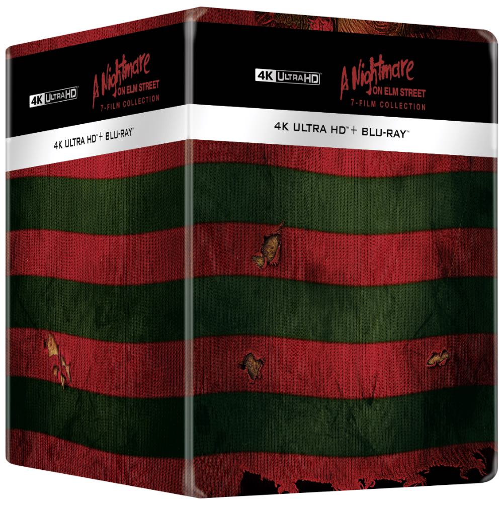 Avec son chandail à rayures rouge et vert foncé, Freddy Krueger est entré pour toujours dans la légende du cinéma d’horreur… Ce personnage de fiction créé par Wes Craven et incarné pour la première fois par Robert Englund dans Les griffes de la nuit (1984) ainsi que dans les sept autres films de l’emblématique saga. Tueur en série brûlé vif par les parents de ses jeunes victimes, Freddy revient d’entre les morts sous forme démoniaque afin de poursuivre et assassiner des adolescents dans leurs rêves. Freddy Krueger est né le 1er février 1942, à l’hôpital psychiatrique de Westin Hills, à Springwood dans l’Ohio. Il est le résultat de multiples viols qu’avait subis Amanda Krueger, alors qu’elle était nonne stagiaire dans un service de cet hôpital qui s’occupait de fous dangereux. Freddy vit au sein d’une famille d’adoption, hostile à son égard et il est également le souffre-douleur de ses camarades de classe. À un âge déjà très précoce, Krueger présente des signes de sadisme. Il s’adonne aux meurtres de petits animaux. Il apprivoise la souffrance comme source de plaisir en s’auto-mutilant. À l’adolescence, Krueger assassine son tuteur, ivrogne notoire, à l’aide d’une lame de rasoir. Une vingtaine d’années plus tard, il épouse Loretta, une serveuse, avec laquelle il aura une fille, Katheryn. C’est durant cette période que Freddy confectionne une arme atypique, à l’aide d’un gant de jardinage, pourvue de lames de couteaux. Il s’en servira pour mettre à mort une vingtaine d’enfants du quartier après les avoir enlevés. Krueger utilisera la centrale thermique dans laquelle il travaille comme lieu pour commettre ses forfaits… Un beau coffret… rayé rouge et vert (en 4K – Ultra HD) regroupe les sept films de la saga, en l’occurrence Les griffes de la nuit (1984) de Wes Craven dans lequel Freddy, le tueur d’enfants d’Elm Street, fut assassiné par les parents de ses victimes avant de revenir d’entre les morts… Suivent La revanche de Freddy (1985) de Jack Sholder, Les griffes du cauchemar (1987) de Chuck Russell, Le cauchemar de Freddy (1988) de Renny Harlin, L’enfant du cauchemar (1989) de Stephen Hopkins, La fin de Freddy : l’ultime cauchemar (1991) de Rachel Talalay et enfin Freddy sort de la nuit (1994) qui voit le retour derrière la caméra de Wes Craven. Robert Englund a cité comme influence pour son Freddy la performance de Klaus Kinski dans le Nosferatu, fantôme de la nuit (1979) de Werner Herzog. (Warner)