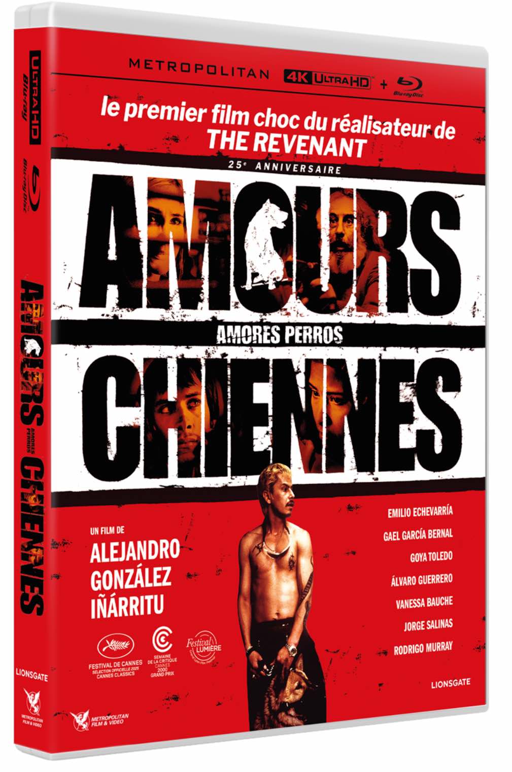 Un tragique accident de la circulation dans les rues de Mexico va mettre en relation trois récits parallèles et les trois protagonistes d’une histoire bien mouvementée : Octavio, jeune sans foi ni loi (Gael Garcia Bernal), Valeria, mannequin célèbre (Goya Toledo) et El Chivo, vieux révolutionnaire clochardisé (Emilio Echevarria), tous trois punis par la fatalité. Dans l’épisode 1, Octavio, adolescent banal, participe, pour se faire de l’argent, à des combats de chiens clandestins. Son chien Cofi surpasse tous ses adversaires. Mais son amour de l’argent et sa convoitise pour sa belle-sœur sont bientôt punis. Dans l’épisode 2, Valeria mène, dans un bel appartement, l’existence feutrée et superficielle des mannequins célèbres. Tout bascule après l’accident de voiture qui la cloue sur un fauteuil roulant. Son chien disparaît dans un trou de plancher et l’appartement devient la maison de l’angoisse où les rats font la loi. Dans l’épisode 3, El Chivo, vieux prof de fac devenu guérillero communiste, puis tueur à gages à sa sortie de prison, vit dans un quartier populaire de Mexico. En fin de vie, il est devenu un clochard que personne ne remarque plus dans la rue. Seuls ses chiens lui servent d’interlocuteurs. Mais son amour pour sa fille est intact. En 2000, Alejandro González Iñárritu signe, ici, le premier volet de la « trilogie de la mort » qui sera suivi de 21 grammes (2003) et de Babel (2006). Sur une bande son magnifique, voici trois histoires d’amour vouées à l’échec et de tragiques destins entremêlés autour de la perte, de la précarité et de l’animalité des hommes, les chiens faisant symboliquement le lien entre les épisodes. Une nouvelle sortie restaurée en 4K Ultra HD. Remarquable ! (Metropolitan)