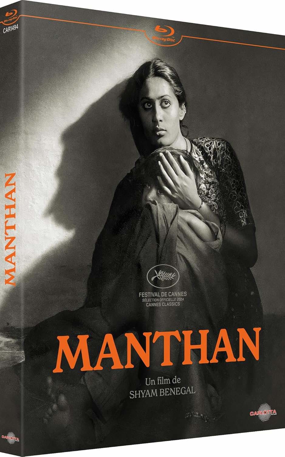 Vétérinaire idéaliste, le docteur Manohar Rao vient fonder une coopérative laitière dans un village où les producteurs de lait sont en majorité des dalits, c’est-à-dire des intouchables. Il doit faire face à Mishraji, qui achète à bas prix le lait de tous les villageois, mais aussi au chef du village qui souhaite utiliser la coopérative naissante pour renforcer son pouvoir. Rao s’aperçoit vite qu’il a besoin du soutien de la population dalit pour réussir son entreprise. Bindu, une femme de caractère appartenant à cette communauté, sympathise avec lui et accepte d’y participer, entrainant avec elle les autres femmes. Mais Bhola, dont la forte personnalité fait de lui le leader de la communauté, reste sur ses gardes. Sa méfiance s’aggrave lorsqu’il découvre qu’un des associés de Rao a une aventure avec une femme de sa caste. Lorsque Rao finit par convaincre Bhola, l’ensemble du village se rallie à sa cause et des élections sont organisées pour désigner le président de la coopérative. Le vainqueur est un dalit. Mais le chef du village n’accepte pas cette remise en cause de son pouvoir. Il trouve un allié en la personne de Mishraji dont l’entreprise est menacée par le développement de la coopérative. Mishraji parvient à convaincre Bindu, en grande difficulté financière, de prétendre que Rao l’a séduite. Rao et son équipe doivent quitter le village, mais la coopérative ne périclite pas pour autant : les producteurs de lait continuent son œuvre. Inspiré par Verghese Kurien, qui a développé la production de lait dans le pays en s’opposant aux multinationales, Manthan (pour la première fois en Blu-ray dans sa nouvelle restauration 4K) doit son existence à la formidable mobilisation de 500 000 fermiers de la région du Gujarat, lesquels, à hauteur de deux roupies par personne, ont permis de financer le film. Réalisé en 1976 par Shyam Benegal, pionnier du cinéma « parallèle » indien situé à mi-chemin entre films d’auteur et productions commerciales, Manthan jouit d’une popularité inégalée depuis cinquante ans, hautement justifiée par l’incroyable performance de ses acteurs comme par l’impact social qu’il laissa sur son pays. Dans les suppléments, on trouve un retour (10 mn) sur la restauration exceptionnelle, confiée à la Film Heritage Foundation, qui a abouti à la projection du film à Cannes Classics 2024 et à sa ressortie en Inde dans des salles combles. Par ailleurs, une discussion (25 mn) entre l’acteur du film Naseeruddin Shah et Shivendra Singh Dungarpur, directeur de la Film Heritage Foundation, menée par Anupama Chopra pour Film Companion à Cannes 2024. (Carlotta)