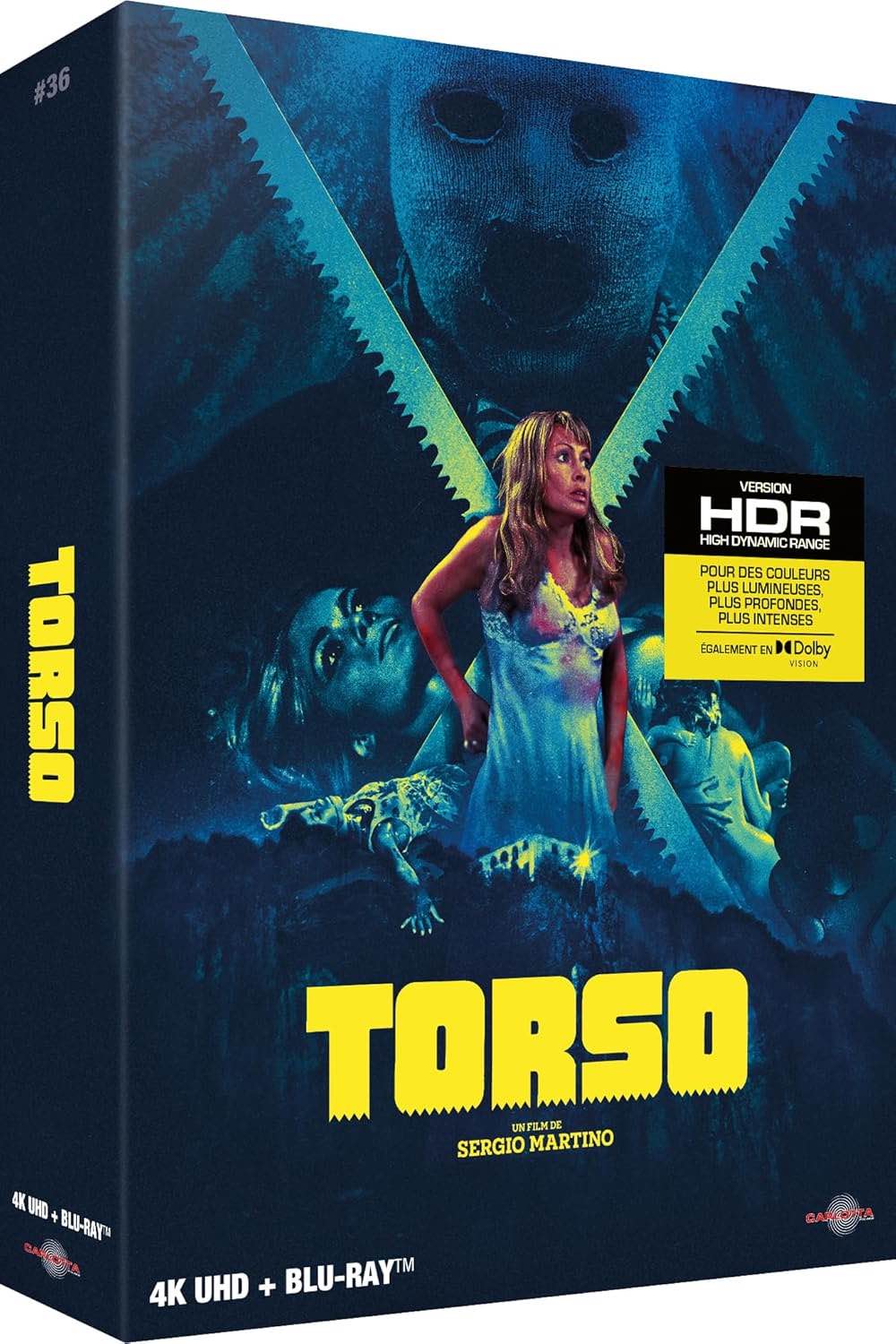 Un redoutable psychopathe secoue la ville universitaire italienne de Pérouse en étranglant et en assassinant de préférence de jeunes et séduisantes étudiantes en histoire de l’art avec un foulard noir et rouge. Le tueur inconnu découpe ensuite ses victimes à la scie. La police est dans le noir. Daniela soupçonne bientôt son fervent admirateur Stefano, un étrange camarade d’université, d’être le coupable. Sur les conseils de son oncle, elle déménage avec Jane et deux autres étudiantes étrangères de la faculté dans une villa isolée à la campagne. Elles s’installent ainsi à Tagliacozzo, un petit village des Abruzzes. La grande demeure est sur une falaise surplombant le bourg. Les quatre amies pensent désormais être à l’abri… Un jour, Jane se foule la cheville en tombant dans l’escalier. Un médecin lui prescrit des somnifères pour passer la nuit sans souffrir. Mais lorsqu’elle se réveille le lendemain matin, elle cherche ses amies qui, sans qu’elle s’en aperçoive, ont été victimes du tueur sanguinaire pendant la nuit. Pour Jane, il s’agit désormais de survie… Réalisateur, scénariste et producteur, Sergio Martino, 87 ans, a connu, dans les années 70, une période où il signa une demi-douzaine de giallo comme Toutes les couleurs du vice (1972) ou Ton vice est une chambre close dont moi seul ai la clé (1972) et donc ce I corpi presentano tracce di violenza carnale (en v.o.) en 1973, disponible pour la première fois Blu-ray 4K UHD dans un beau coffret avec des memorabilia. Martino réalise, ici, son film le plus macabre et le plus stylisé. Savoureux mélange de suspense, d’érotisme et de violence graphique, Torso, acclamé par Tarantino ou Eli Roth, est considéré comme l’un des premiers ponts vers le cinéma d’horreur moderne. On estime aussi que ce giallo est l’un des premiers exemples de slasher, notamment à cause du jeu du chat et de la souris entre le tueur et la dernière survivante qui marque les trente dernières minutes du film. Le film est accompagné d’une série de suppléments. Dans Le premier slasher (25 mn), Sergio Martino se remémore le tournage du film dans un entretien inédit en France. Avec Giallo mon amour (16 mn), le coscénariste Ernesto Gastaldi évoque la grande époque du giallo et ses spécificités en termes d’écriture. Dans Un Français en Italie (34 mn), le comédien Luc Merenda revient sur sa carrière en Italie et sur ses rencontres avec les gens du milieu. Dans Torso 17 (20 mn), la cinéaste Federica Martino, fille de Sergio Martino, songe à un remake de Torso. Enfin Une violence charnelle entre refoulement et débauche (28 mn) est un entretien avec Jean-François Rauger, critique de cinéma et directeur de la programmation à la Cinémathèque française. (Carlotta)