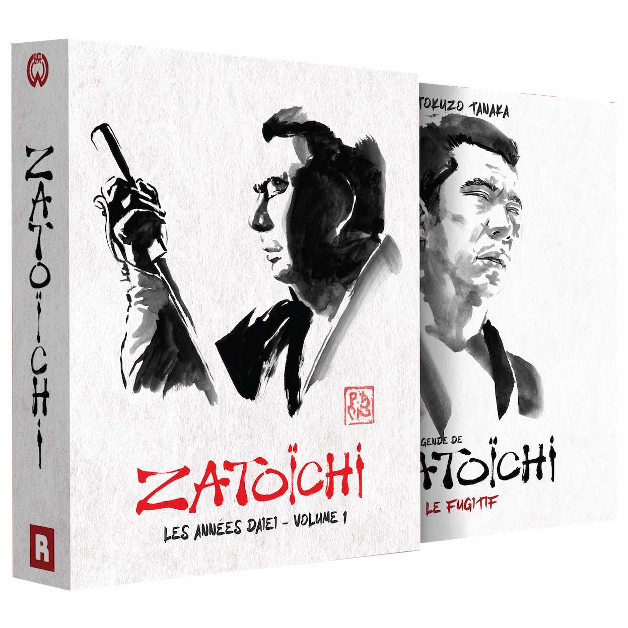 En 1962, la Daiei produit La légende de Zatoïchi – le masseur aveugle. Ce film à petit budget, en noir et blanc, va pulvériser le box-office et marquer irrémédiablement l’histoire du cinéma japonais. Vingt six films et cent épisodes de série TV suivront, faisant de Zatoïchi, l’une des sagas les plus retentissantes mais aussi les plus complètes du cinéma japonais. Le masseur aveugle, ancien yakuza devenu vagabond errant, aux techniques de sabre redoutables, est interprété par Shintaro Katsu, qui jouera ce personnage jusqu’en 1989. Aux commandes des films, on trouve des réalisateurs de légendes tels que Kazuo Mori, Kenji Misumi ou Tokuzo Tanaka. Un coffret collector (illustré par Péchane) contenant cinq Blu-ray (films 1 à 3 en noir et blanc, films 4 et 5 en couleurs) rassemble les quatre premiers films de la saga ainsi que Le bandit aveugle, un film précurseur qui présente une première itération du personnage. Les origines de Zatoïchi – Le bandit aveugle (1960) : Avant de devenir Zatoïchi, Shintaro Katsu incarne Suginoichi, un bandit aveugle froid et ambitieux, prêt à tout pour s’emparer du pouvoir, au détriment de ceux qui l’entourent… Le studio Daiei dévoile la première version d’un personnage à la fois proche et éloigné du Zatoïchi à venir. La légende de Zatoichi – Le masseur aveugle (1962) : Le masseur aveugle Zatoïchi rend visite à un chef yakuza. Bientôt entraîné dans un conflit avec un clan rival, il se lie d’amitié avec un samouraï malade du camp adverse, tandis que la guerre entre les deux factions devient inévitable. Un premier volet fondateur qui révèle le sabreur aveugle Zatoïchi. La légende de Zatoichi – Le secret (1962) : Les tensions entre deux gangs rivaux éclatent au grand jour. Chaque chef désigne son champion : un ancien samouraï devenu pêcheur, porteur d’un lourd secret, et Zatoïchi, joueur invétéré et masseur, dont le sabre frappe avec la fulgurance de l’éclair. La légende de Zatoichi – Un nouveau voyage (1963) : Zatoïchi tente de se retirer dans son village natal, mais la violence le rattrape lorsqu’il se retrouve mêlé à un conflit entre un clan de yakuzas et des villageois opprimés. La légende de Zatoichi – Le fugitif (1963) : À son arrivée dans la ville de Shimonita, Ichi apprend qu’un chef yakuza local a mis sa tête à prix. Pris au piège, il découvre qu’un ancien amour a été assassiné. Dévoré par la colère, il part affronter les meurtriers : un rōnin mercenaire et son clan. Dans les bonus, on trouve la présentation des films par Clément Rauger, La Naissance du mythe, un entretien avec Fabien Mauro, la présentation du film Le masseur aveugle par le réalisateur nippon Takashi Miike et l’essai Le guerrier handicapé : un grand mythe du cinéma martial. (Roboto Films)